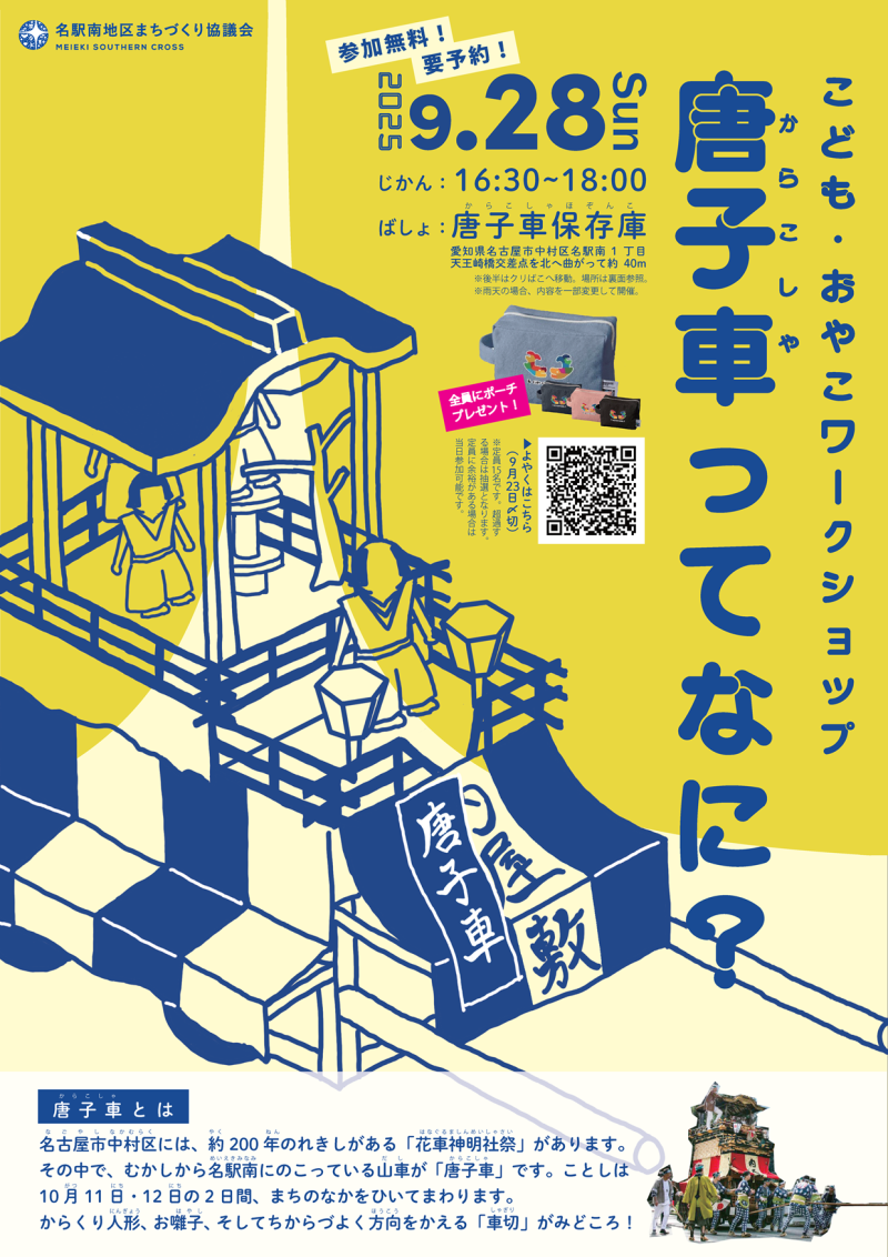 約200年前から地区の祭りで活躍しているからくり山車「唐子車(からこしゃ)」。山車とまちを学ぶ子ども・親子向けワークショップを開催。